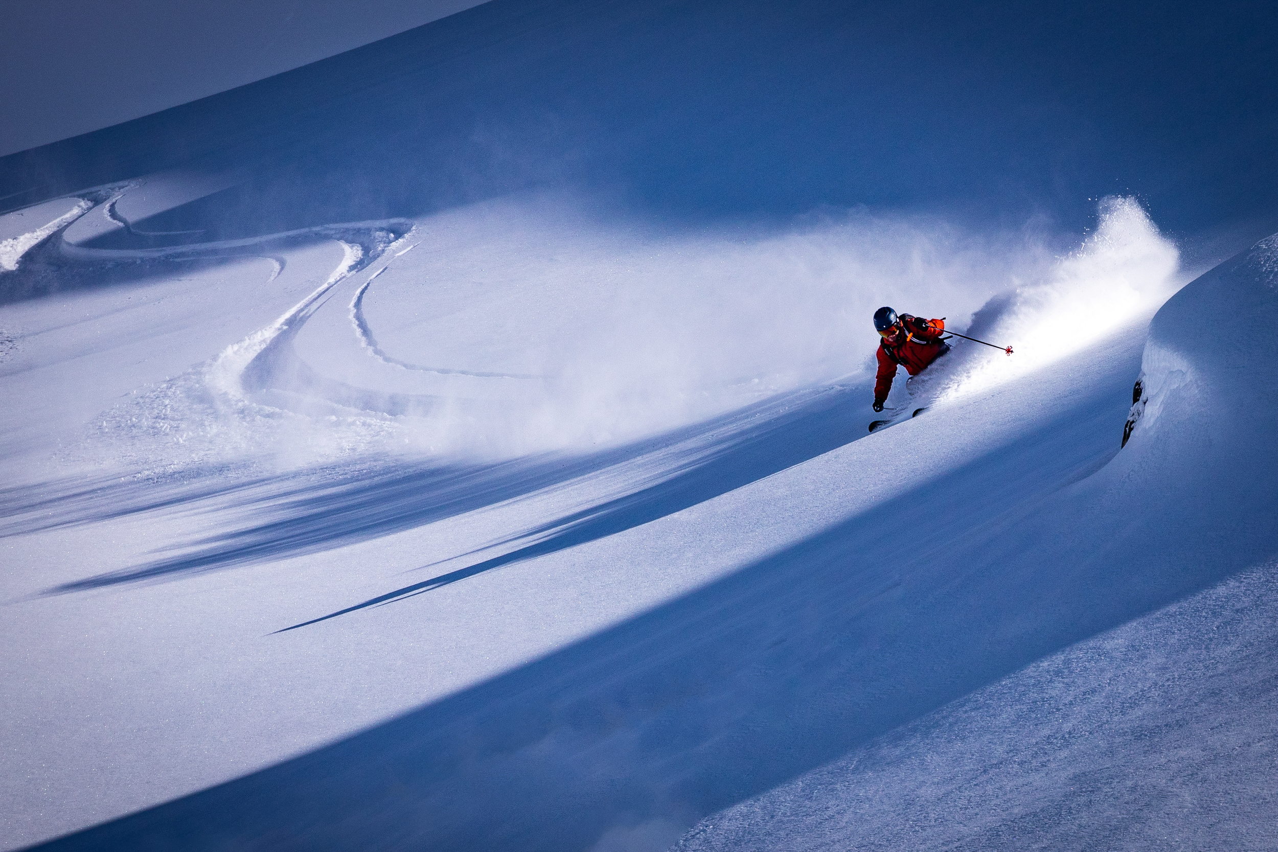 Alaska’s Chugach Mountains offer thousands of square kilometers of skiable terrain. With over 2,000 cm. of snowfall annually, these mountains offer steep skiing and deep powder.