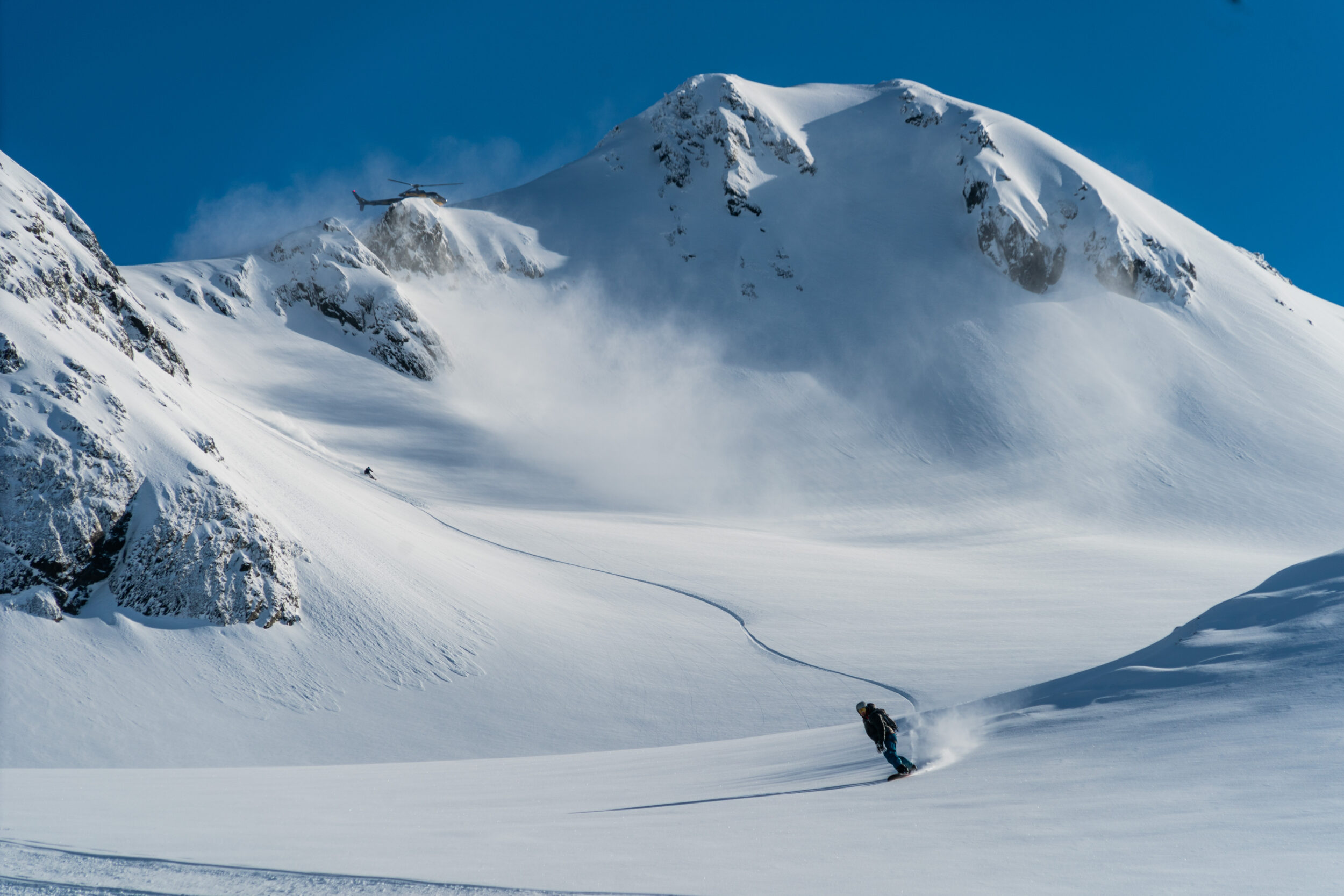The tried and true Chugach experience, we’ve been offering our day skiing trips for 25 years. Day ski trips are reserved up to 3 groups of 4 per helicopter. A 4th standby group can be added as conditions permit. Day skiing includes 16,000-18,000 vertical feet or 8 runs. Partial days occur when weather doesn’t permit a full day of flying, and guests are refunded $100 per 1000 feet below the guarantee. Day skiing reservations can be made from early February through Late April. A great option for a first time bucket lister or a seasoned heli skier. Our single day skiing adventures access some of the best ski and snowboard terrain in Alaska.